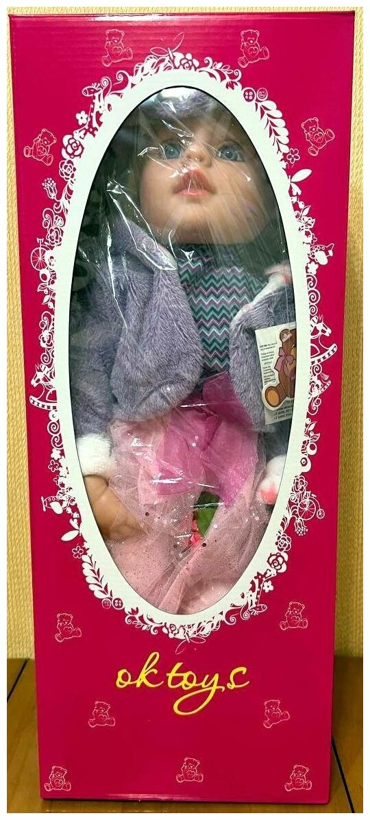 Большая кукла 60 см в розовой курточке, интерактивная в подарочной упаковке, в платье, говорит