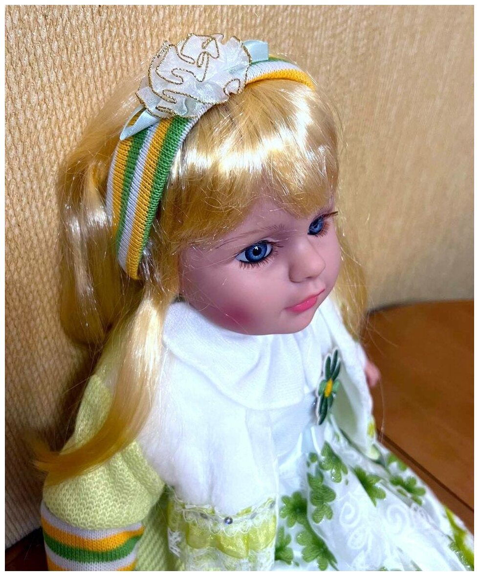Отзывы на Большая кукла 60 см в зеленом кружевном платье, интерактивная в подарочной упаковке, в свитере, говорит