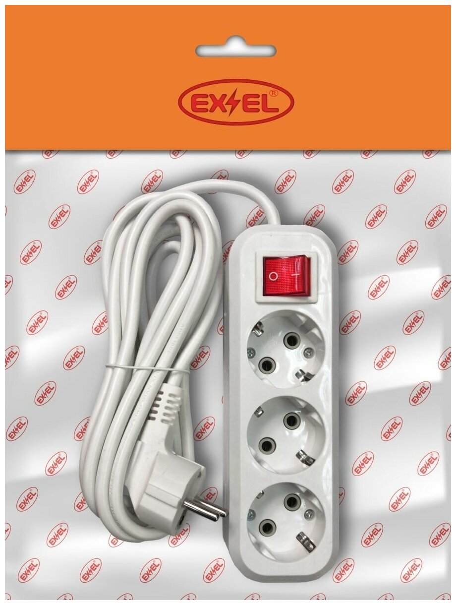 Удлинитель сетевой с заземлением с выключателем 3 метра 3 гнезда EX&EL информация: