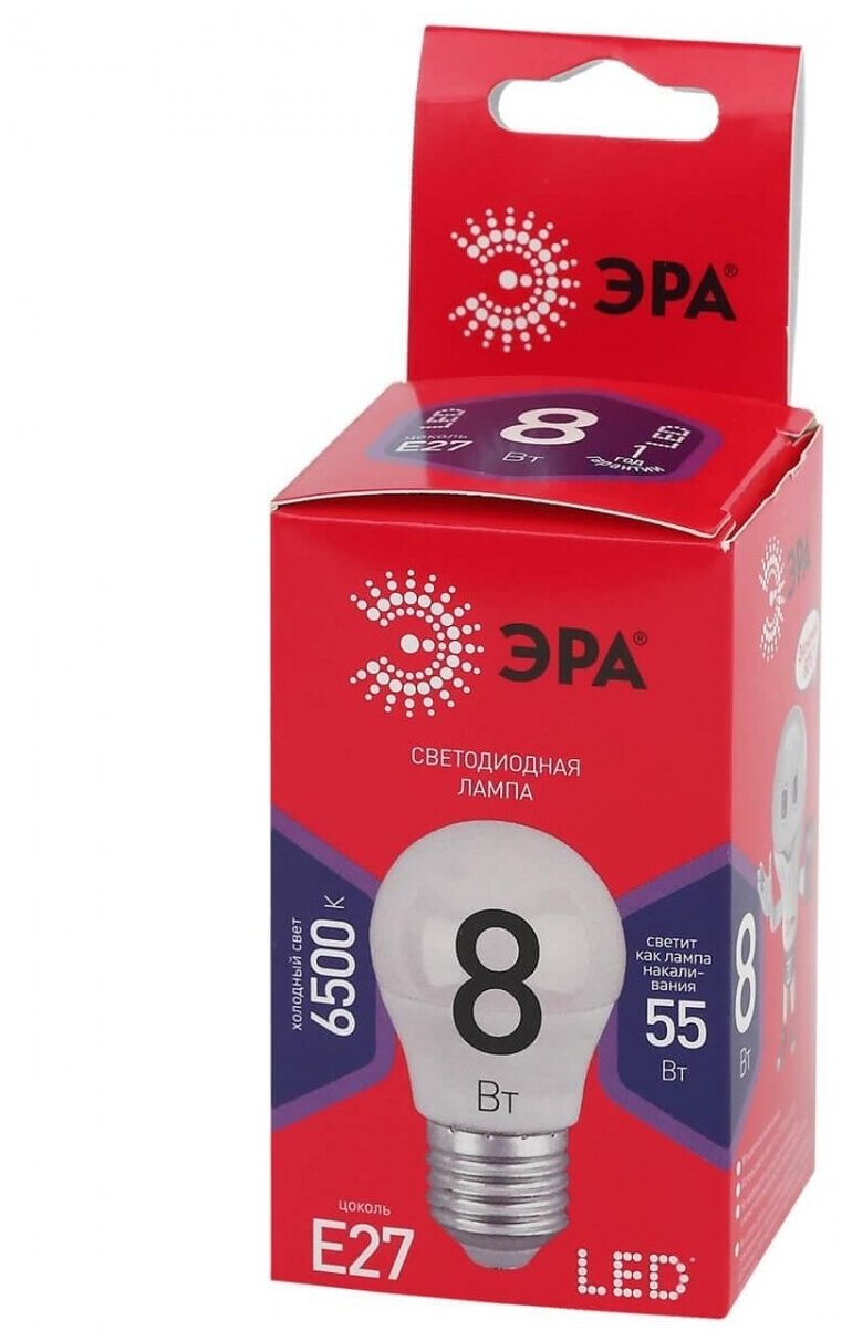 ЭРА LED P45-8W-865-E27 R ЭРА (диод, шар, 8Вт, хол, E27) (10/100/3600)