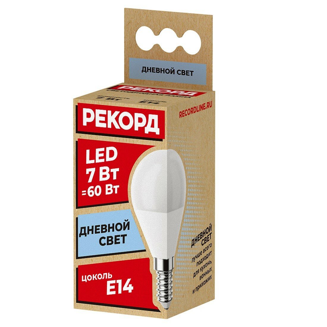 Светодиодная лампа рекорд LED P45 7W Е14 4000К 23884 информация: