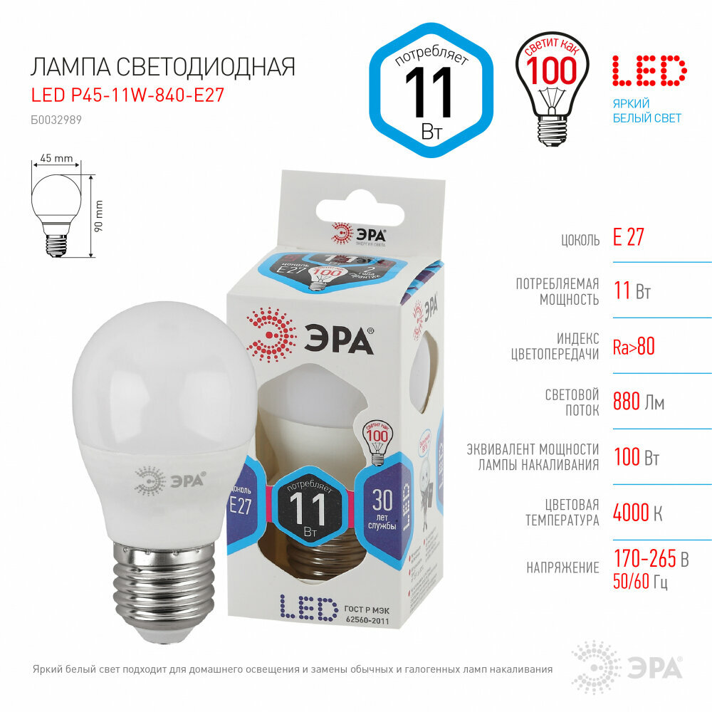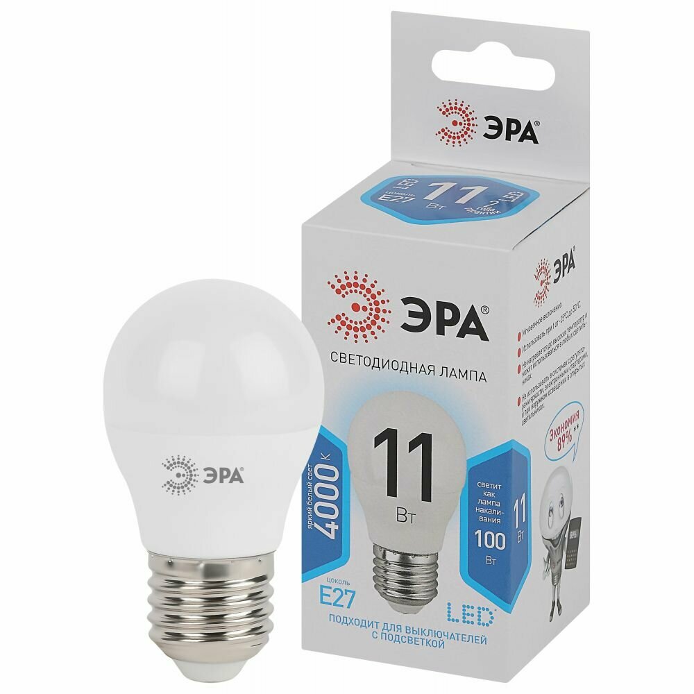 Отзывы на Лампочка светодиодная ЭРА STD LED P45-11W-840-E27 E27 / Е27 11Вт шар нейтральный.цена за(10 шт)