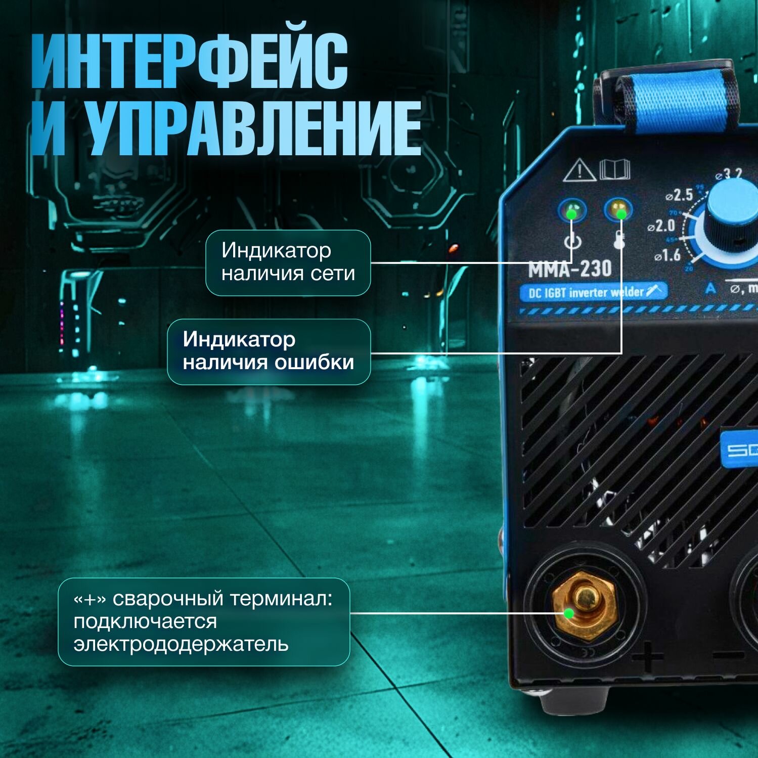 Инвертор сварочный SOLARIS MMA-230 (230В; 20-230 А; 69В; электроды диам. 1.6-5.0 мм; вес 3.7 кг) информация: