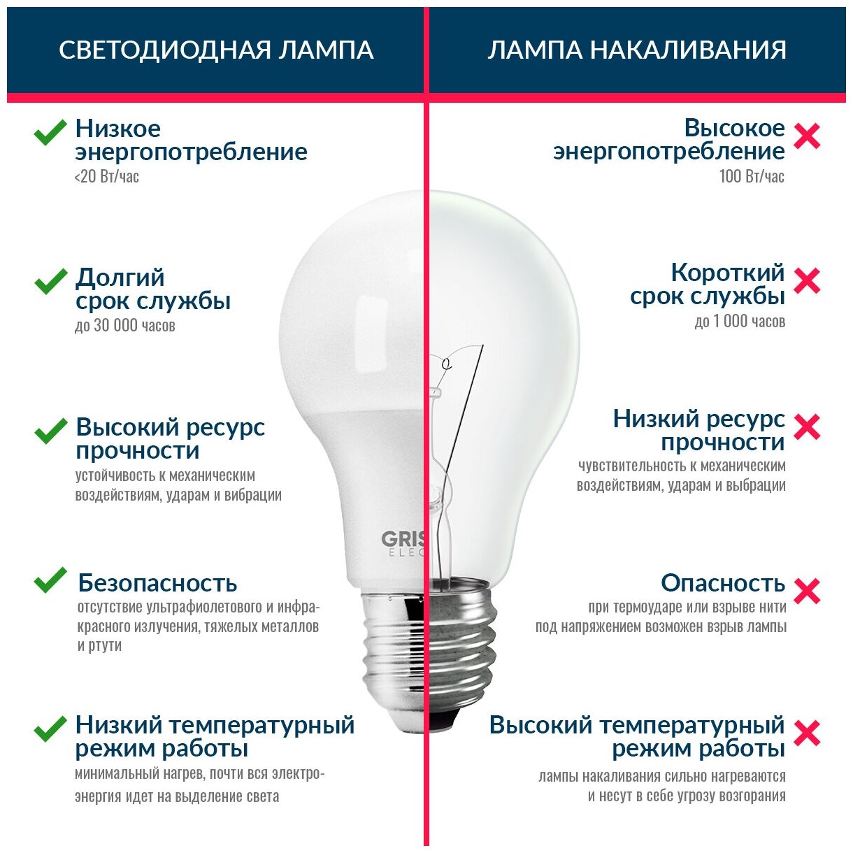 Лампочка светодиодная GRISARD ELECTRIC шар A60 Е27 11Вт 4000К 220В информация: