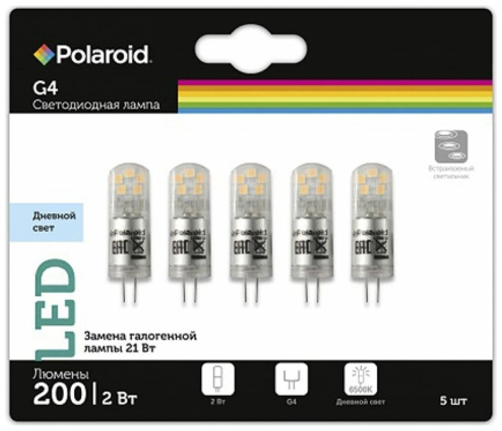 Отзывы на Светодиодная лампа Polaroid 12V G 2W 4000K G4 200lm упаковка 5шт PL-G412V24/5