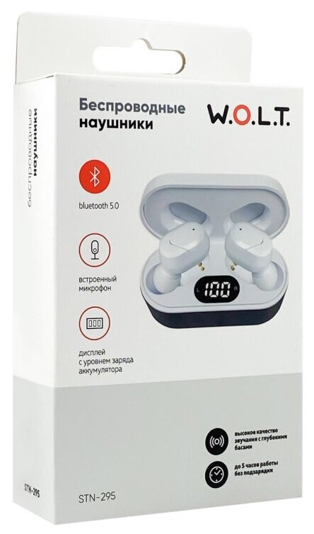 10 цен на Беспроводная гарнитура Bluetooth TWS W.O.L.T. STN-295 белый