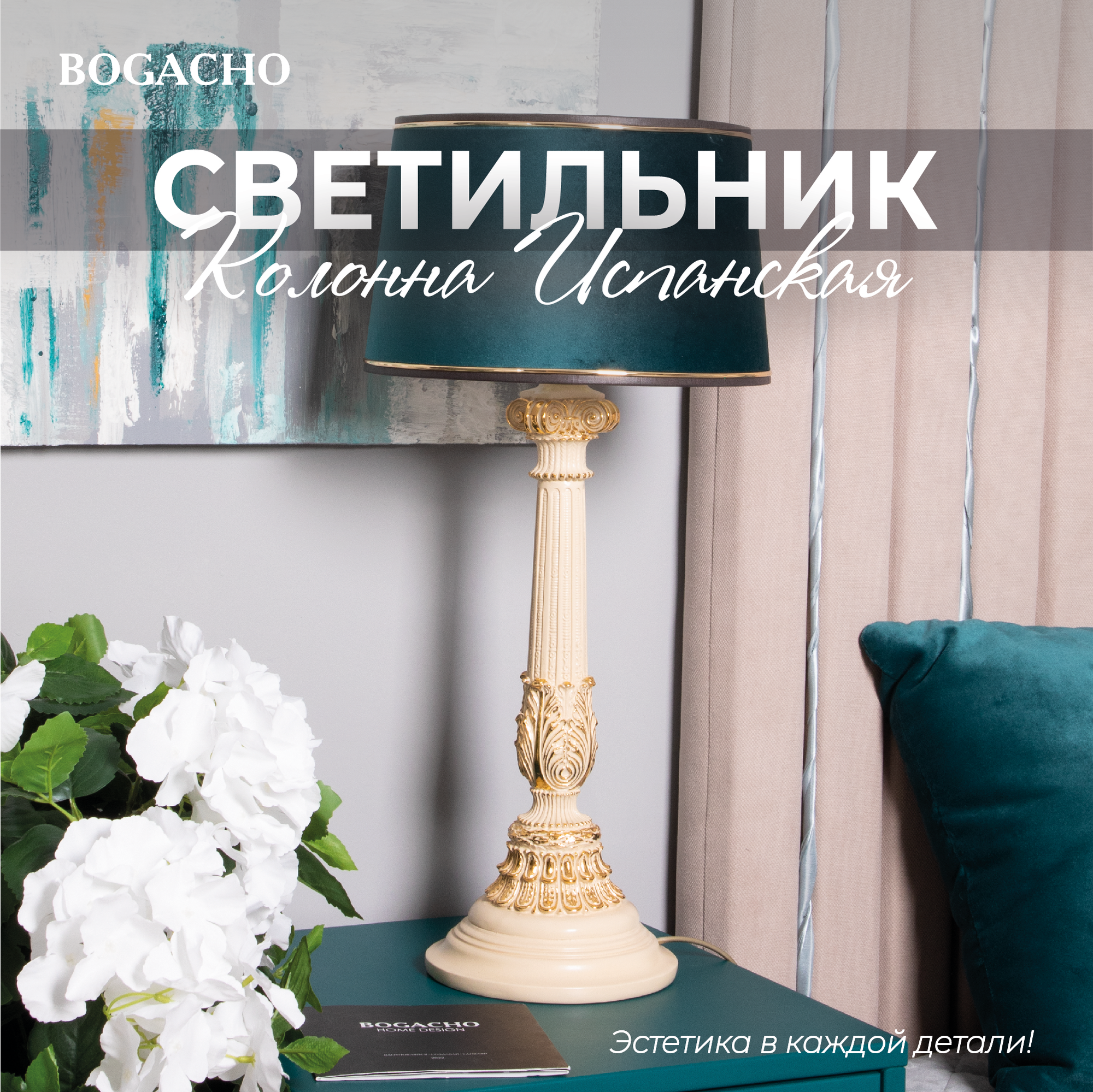 Отзывы на Настольная лампа Bogacho Колонна испанская бежевая с бирюзовым абажуром Тюссо