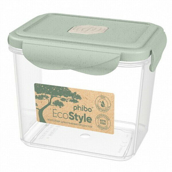 Контейнер герметичн. для хран.продукт/СВЧ ECO STYLE 0,9л прямоуг, зелен флэк 4331213 Phibo/Бытпласт (арт. 794723)