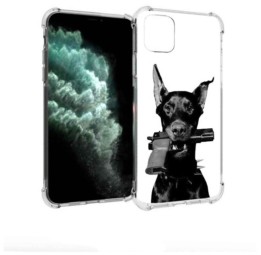 Чехол задняя-панель-накладка-бампер MyPads доберман с пистолетом для iPhone 11 Pro Max противоударный информация:
