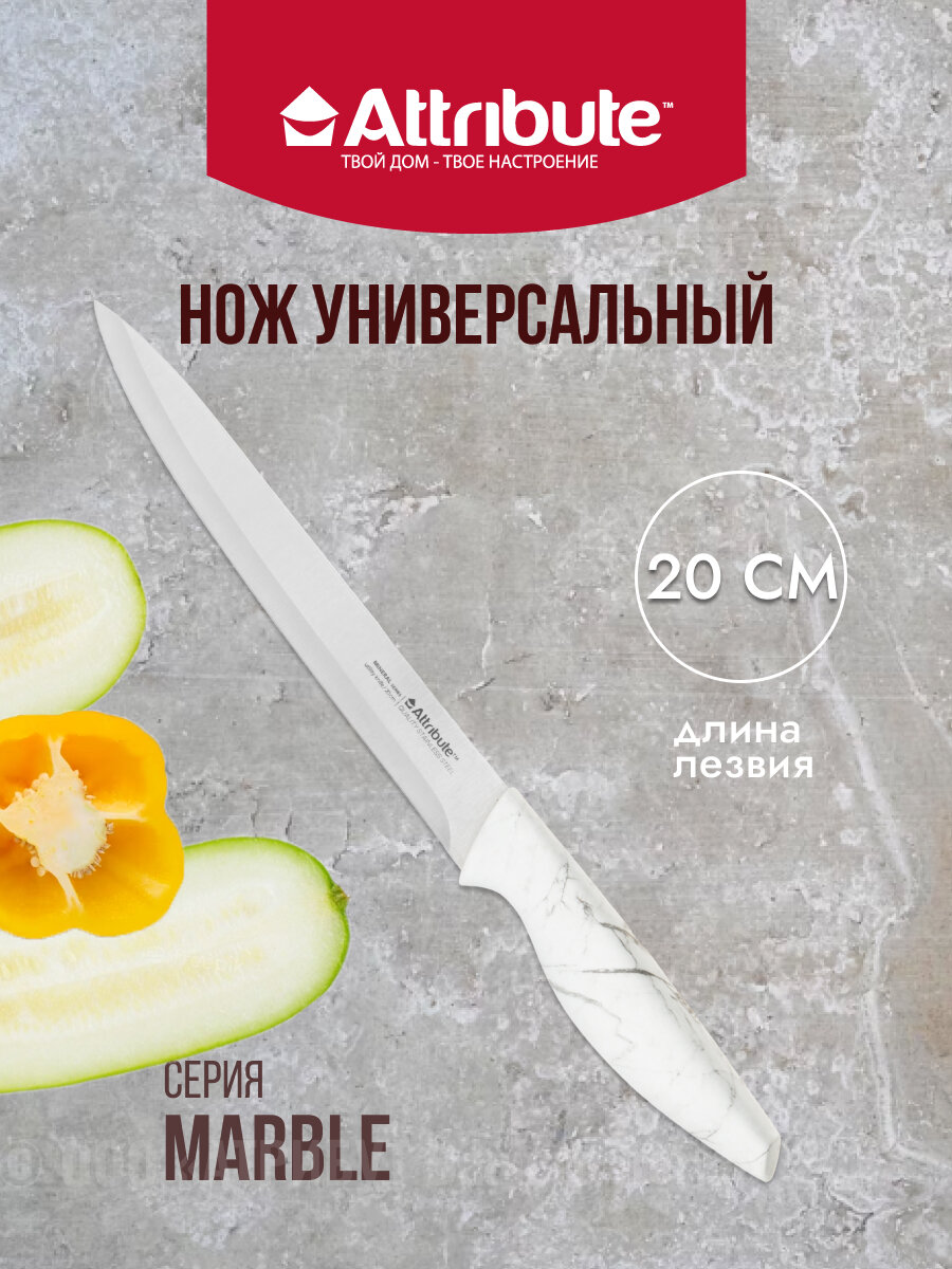 | Дополнительная информация | Нож ATTRIBUTE Marble 20см универсальный нерж. сталь, пластик |