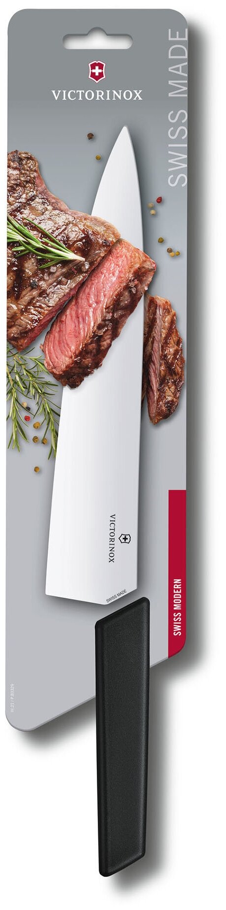 Нож разделочный VICTORINOX Swiss Modern, лезвие 25 см, черный, в блистере 6.9013.25B