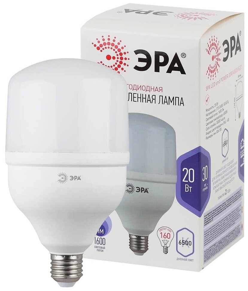 Типы/Лампочки/Светодиодные ЭРА Лампа светодиодная ЭРА E27 20W 6500K матовая LED POWER T80-20W-6500-E27 Б0049588 информация: