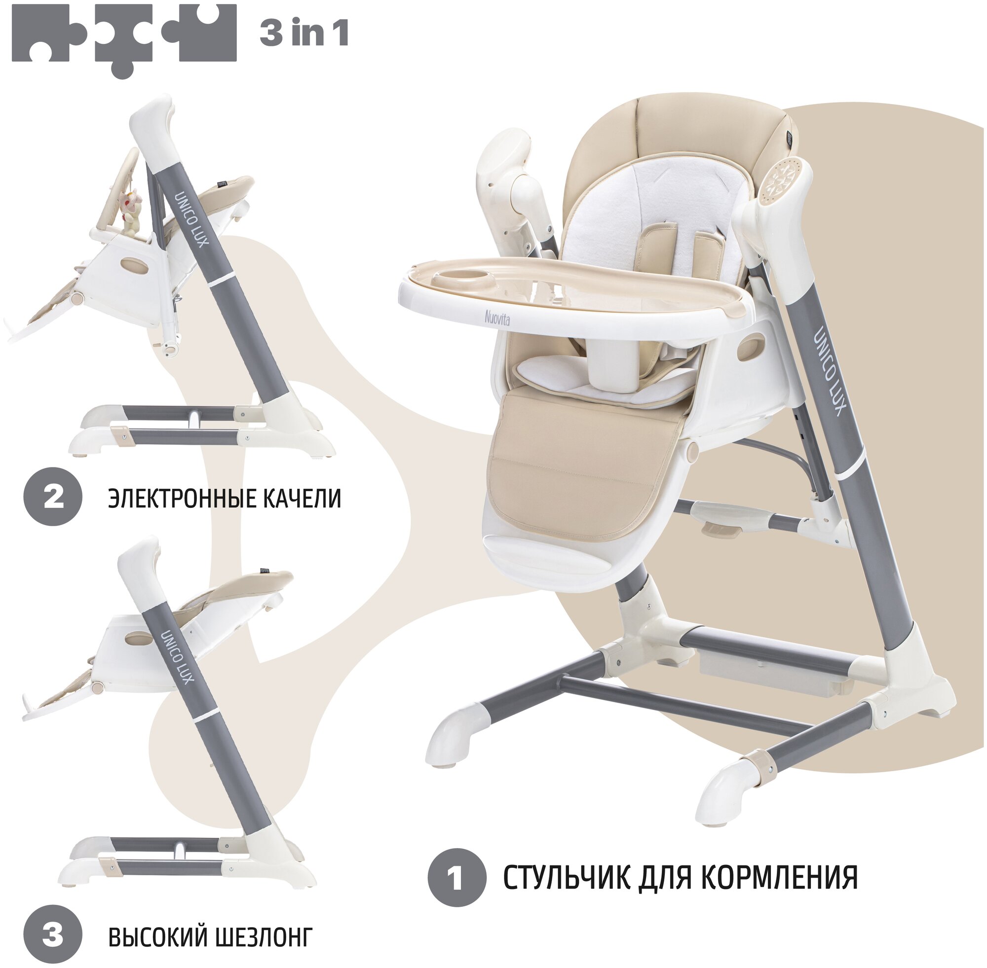 Стульчик для кормления с электронным устройством качения Nuovita Unico lux Bianco (Latte, Bianco/Латте, Белый) информация: