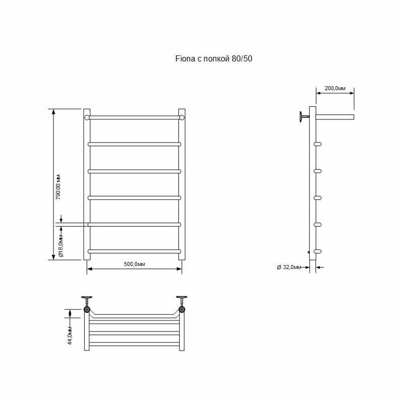 Водяной полотенцесушитель Aquanet Fiona 80x50 266741 с полкой Хром информация: