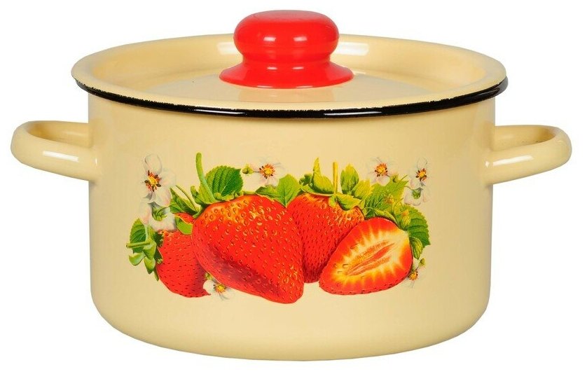 Кастрюля эмалированная 1,5 л с ободком белая с рисунком Фруктовая фантазия