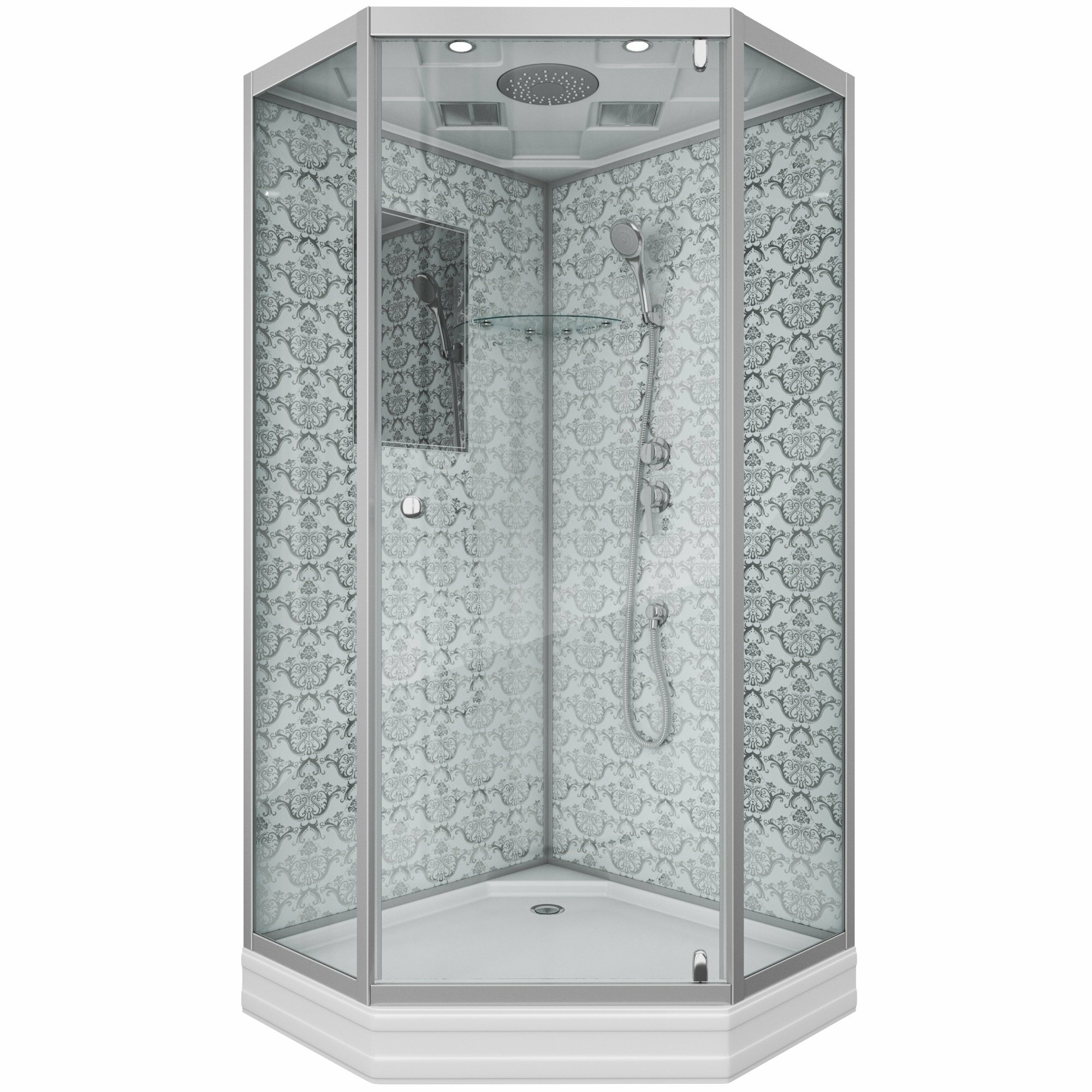 Душевая кабина ESBANO, ESE-90 CR, профиль алюминий, тропический душ, закрытая, 90 см x 90 см