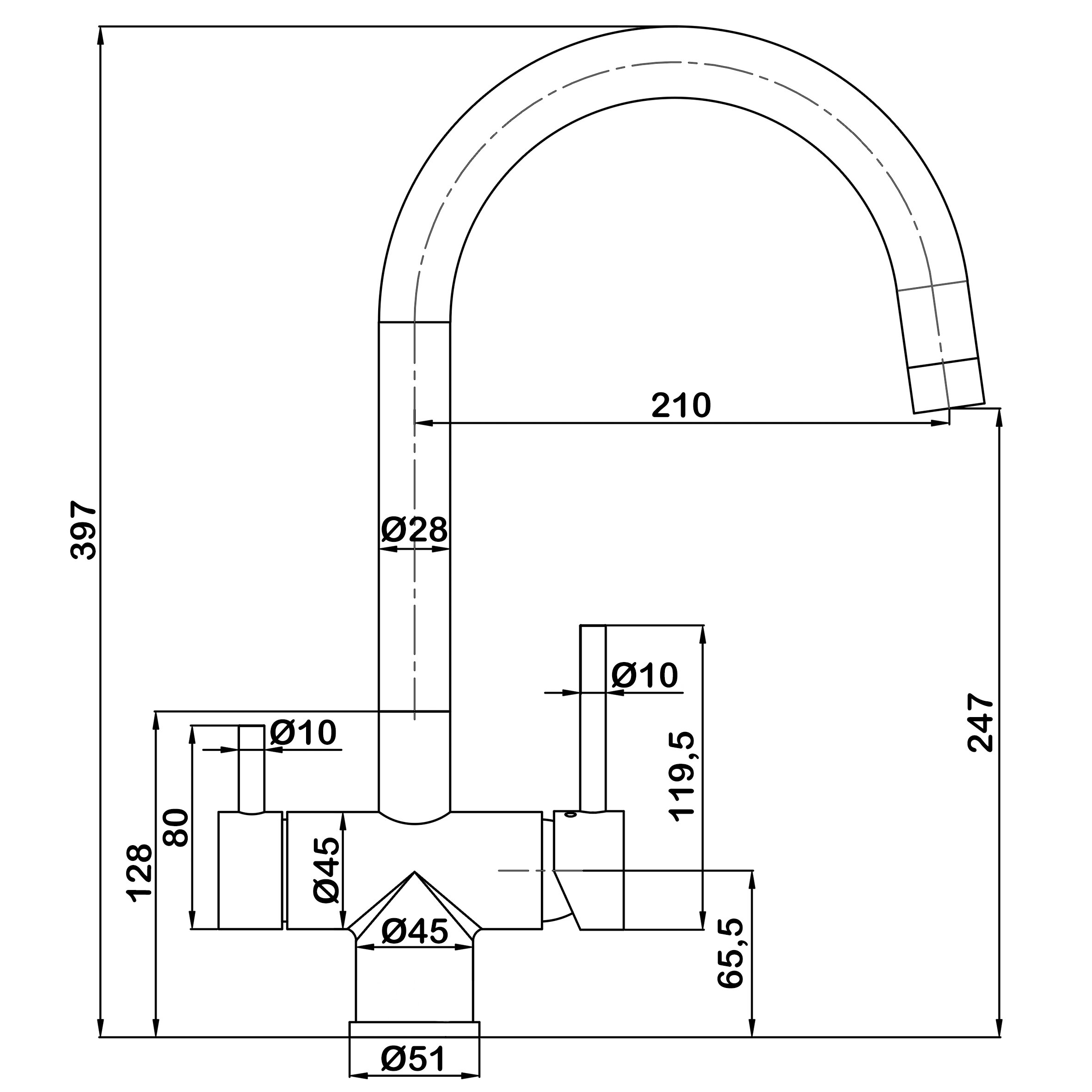 Магнус - Смеситель кухонный С-образный излив, шаровый, с двойным выпуском воды для фильтра, хромированный, материал латунь