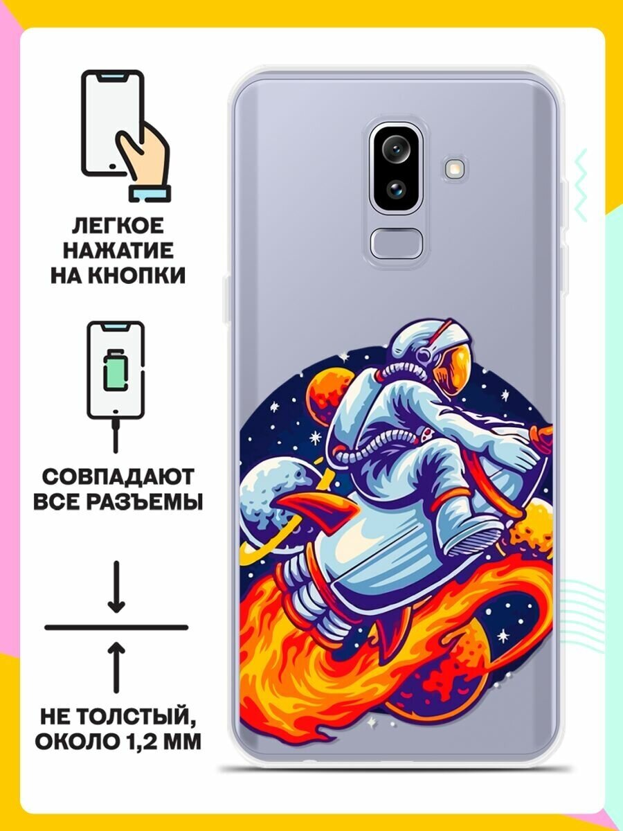 Силиконовый чехол на Samsung Galaxy J8 (2018) Астронавт на ракете / для Самсунг Галакси Джи 8 2018 информация: