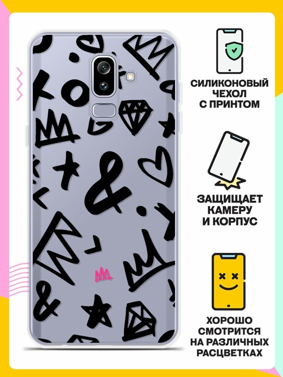 10 цен на Силиконовый чехол на Samsung Galaxy J8 (2018) Узор черный / для Самсунг Галакси Джи 8 2018
