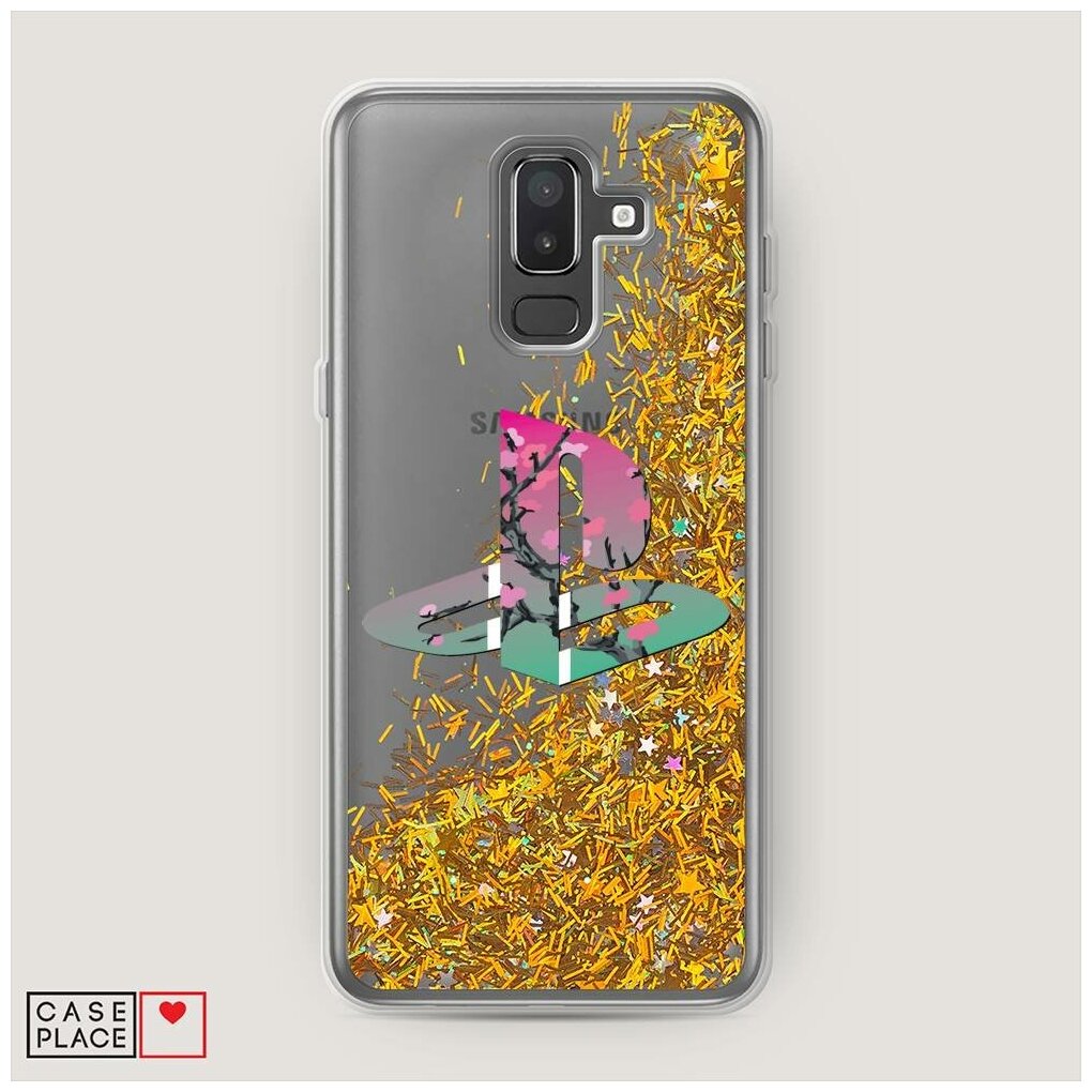 Жидкий чехол с блестками "Лого playstation" на Samsung Galaxy J8 / Самсунг Галакси Джей 8 информация: