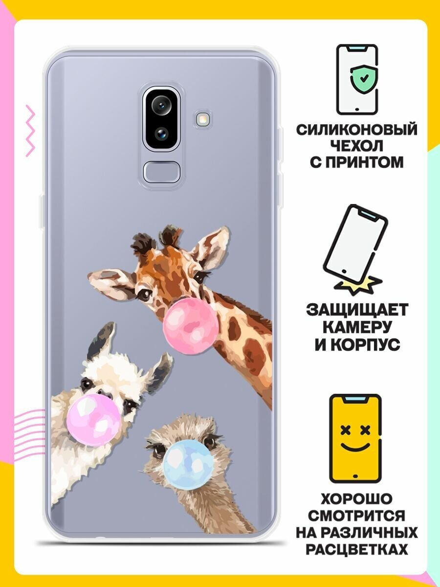 Силиконовый чехол на Samsung Galaxy J8 (2018) Лама, жираф, страус / для Самсунг Галакси Джи 8 2018 информация: