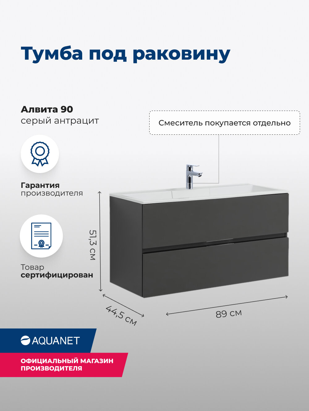Тумба под раковину Aquanet Алвита 90 серый антрацит информация: