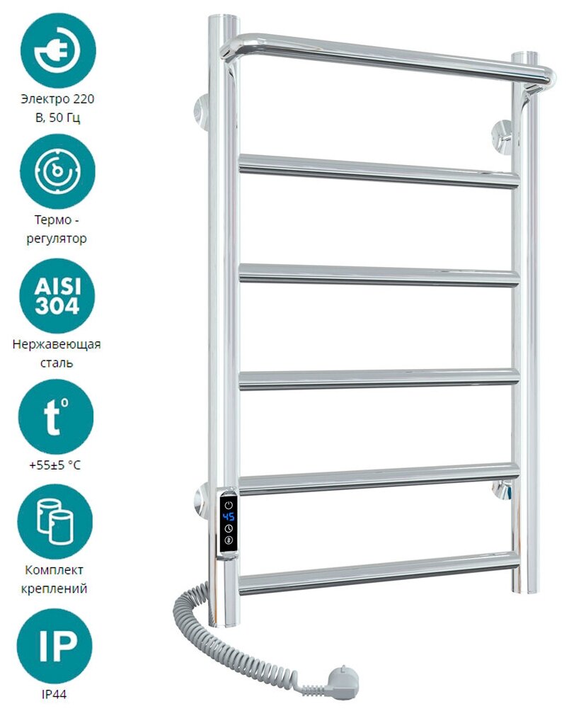 Полотенцесушитель электрический Laris Прайм П6 400х600 с полкой левое подключение хром информация: