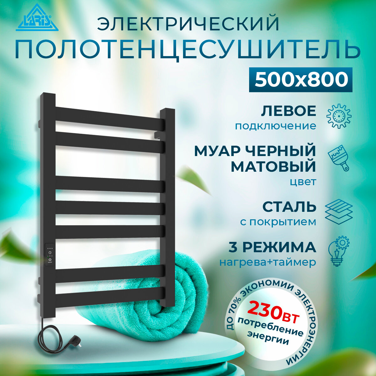 10 цен на Полотенцесушитель электрический Laris Гефест ЧКЧ П7 500мм 800мм черный матовый муар левое подключение с таймером и терморегулятором