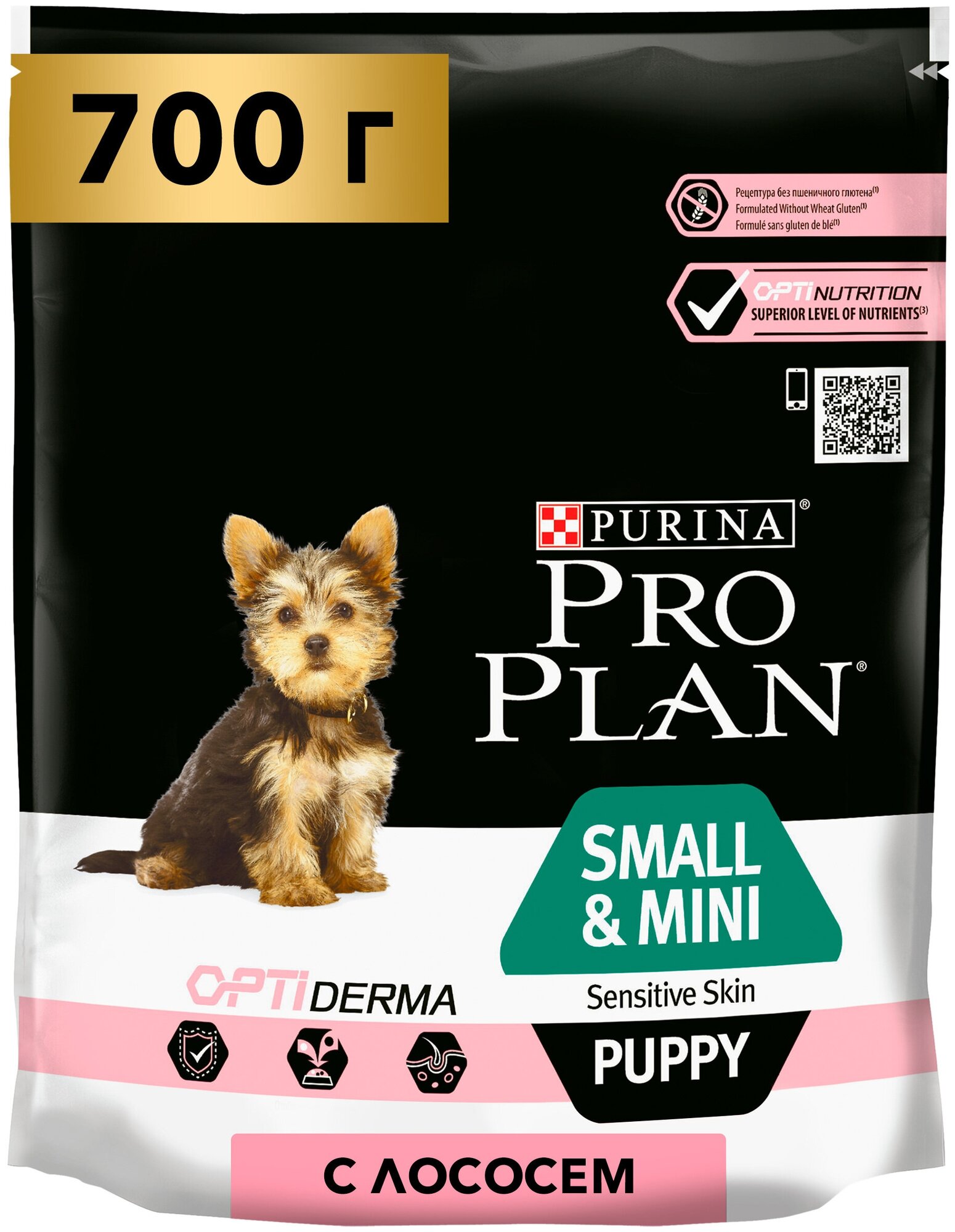 Сухой корм Pro Plan для щенков мелких и карликовых пород с чувствительной кожей, с высоким содержанием лосося, Пакет, 700 г х 4шт информация: