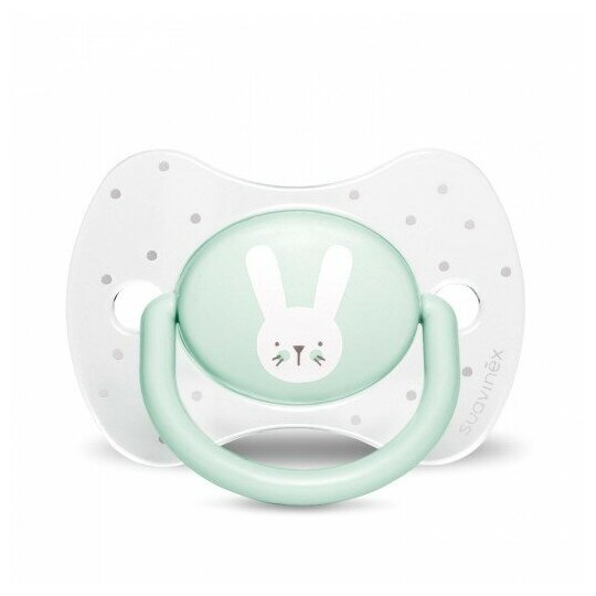 Hugge Baby с физиологической силикиновой соской 0-6 мес. Зеленый зайка с крапинками информация: