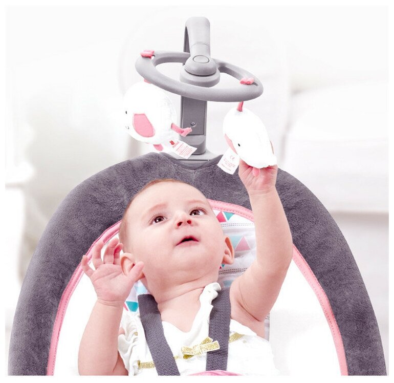 Шезлонг качалка для новорожденного музыкальный 6917 серо-розовый