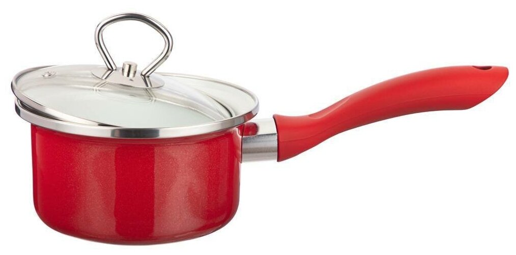 Ковш эмалир. Со стекл. Крышкой С эффектом металлик серия DELUXE ЦВ:красный 1,1 Л. 14Х8,5 СМ