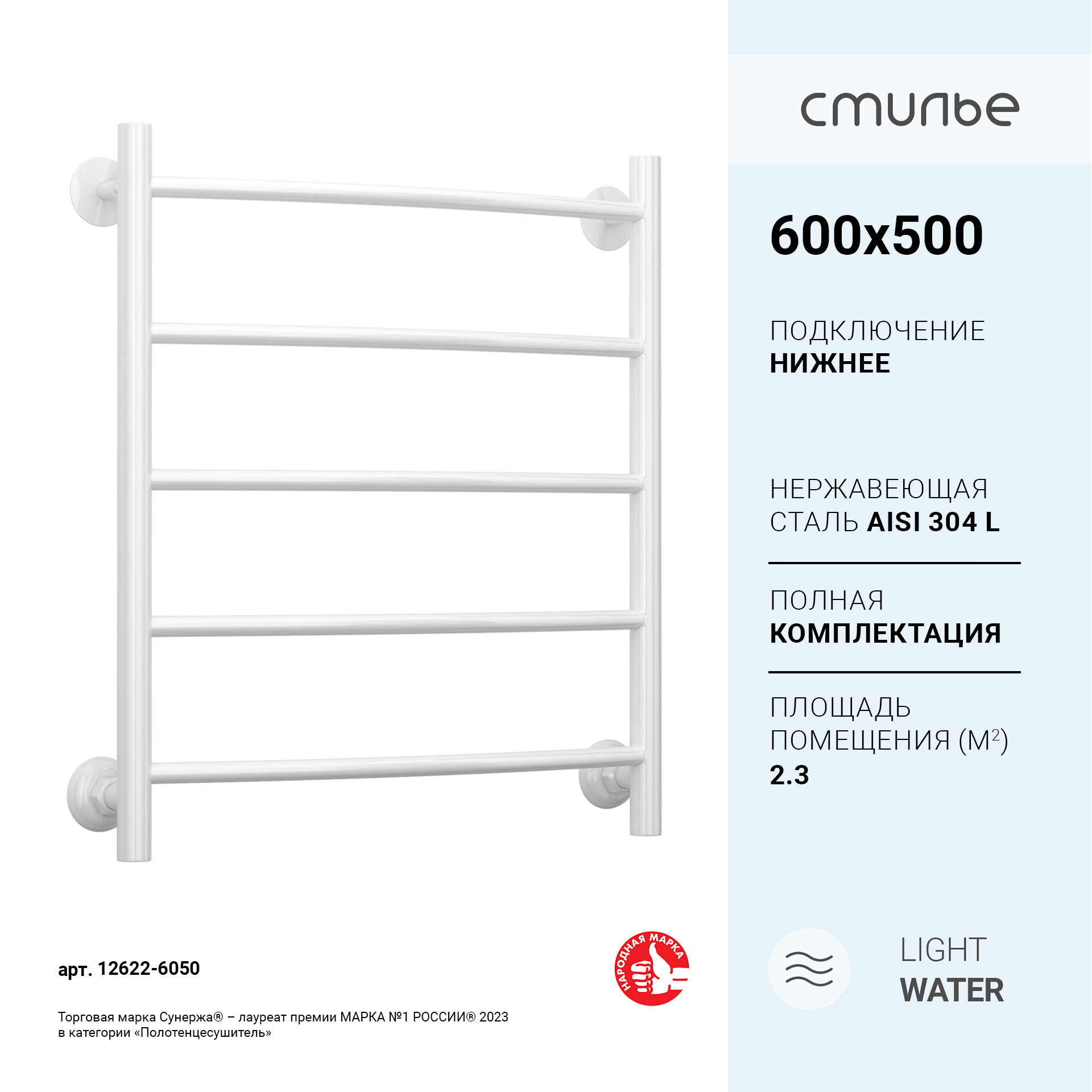 Полотенцесушитель водяной Стилье Версия-Н2 600х500 (5) Г 18 Белый информация: