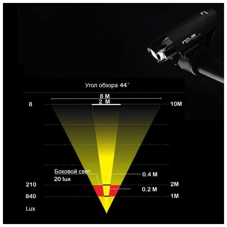 Фара передняя Moon Crescent W 50 люмен, 6 режимов, Li-Po аккумулятор, зарядка USB