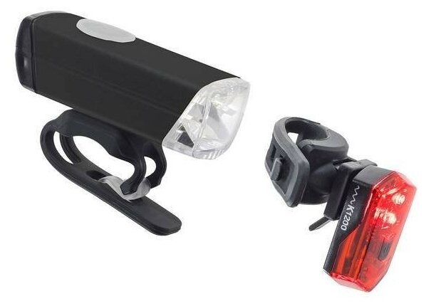 Фонарики 5-220628 задний+передний 1диод повышенной яркости 0.5Вт/3ф USB-заряд. Li-Pol АКБ быстросъемный алюминиевый 26г M-WAVE