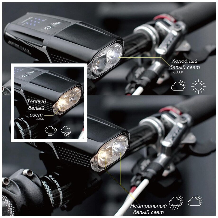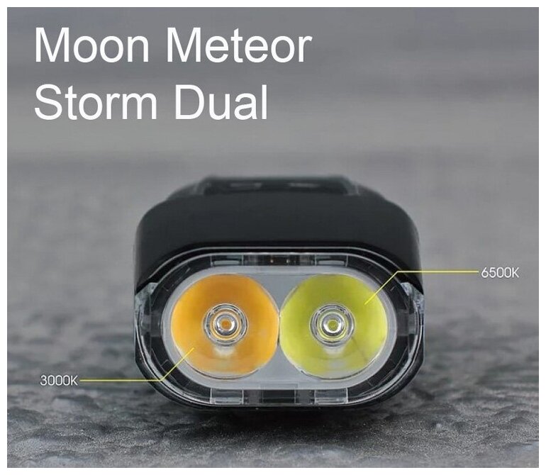 Велофара Moon Meteor Storm Dual, 1300 люмен, 2 диода 3000/6500K противотуманный свет, 7 режимов, USB-C, пульт