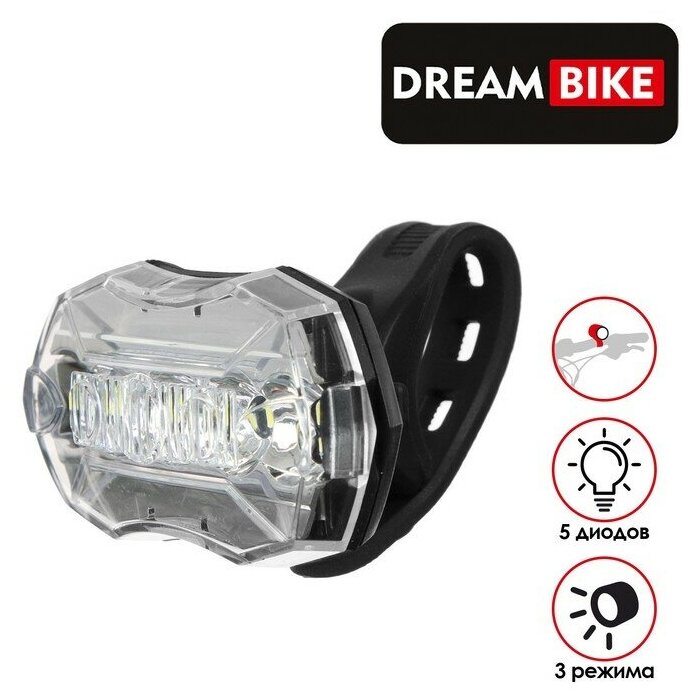 Dream Bike Фонарь велосипедный Dream Bike JY-6090F, передний, 5 диодов, 3 режима