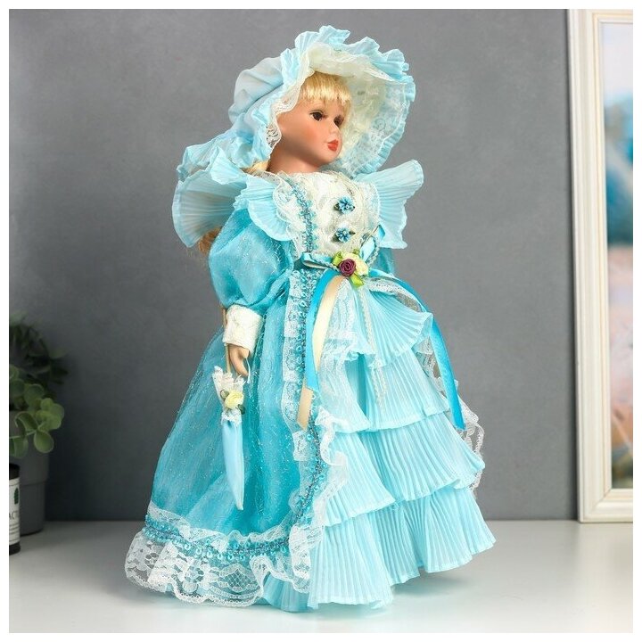 10 цен на Кукла коллекционная керамика "Леди Виктория в голубом платье с рюшами" 40 см