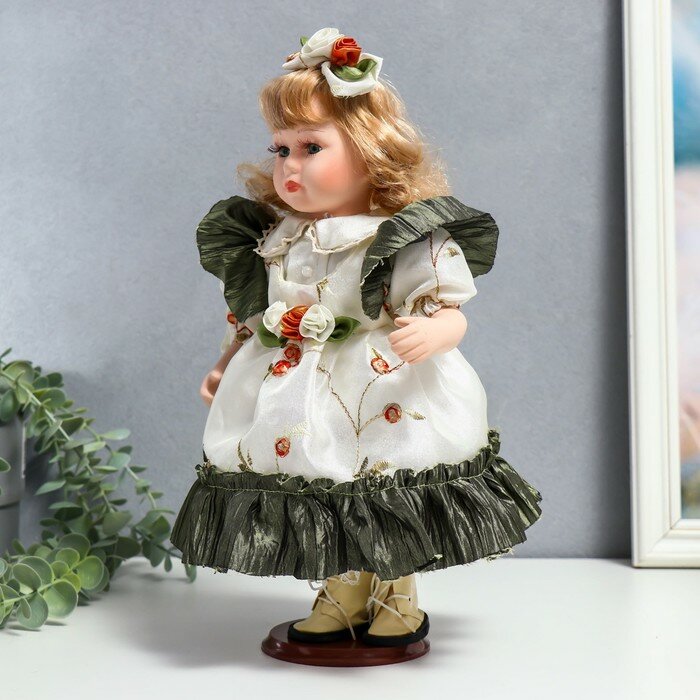 10 цен на Кукла коллекционная керамика "Беатрис в атласном платье с розочками" 30 см./В упаковке шт: 1