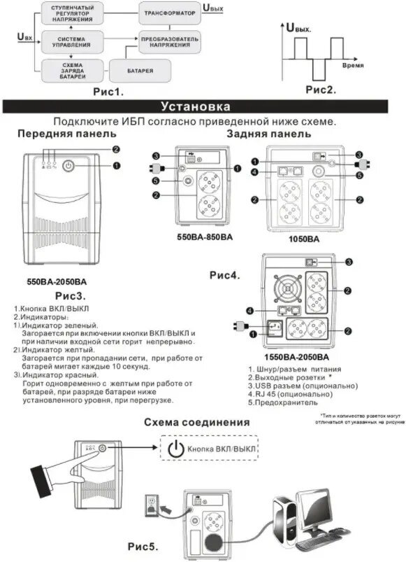 ИБП Powerman Back Pro 1050/UPS Line-interactive 600W/1050VA информация: