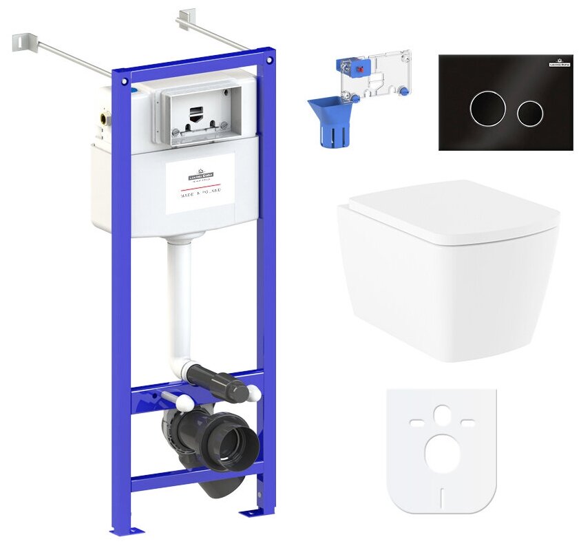 Комплект 9 в 1 Lavinia Boho Bristol Rimless 97010074, безободковый унитаз, сиденье микролифт, инсталляция, клавиша смыва, набор аксессуаров
