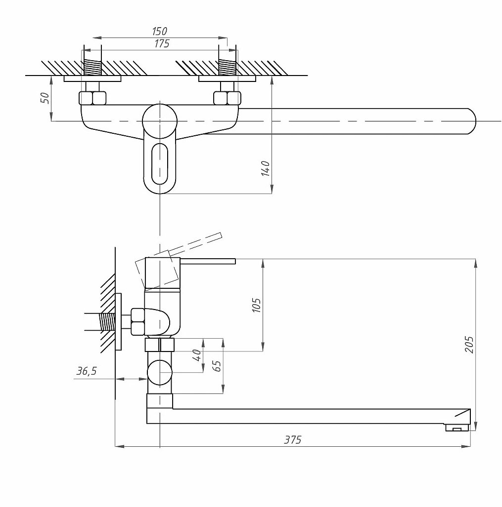 Смеситель на раковину настенный Эверест B46-350 с круглым поворотным изливом, кран-буксы 1/2", хром