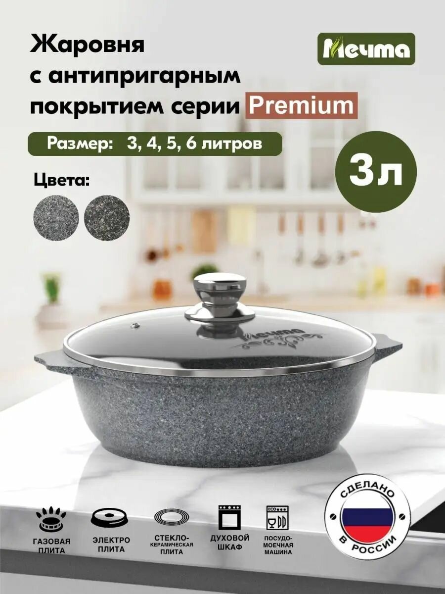 Жаровня Мечта 3 л Премиум с антипригарным покрытием с крышкой, НЕ индукционная 2 737 ₽