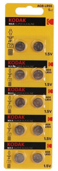 10 цен на Батарейка LR55 (AG8, 381, LR1120) 1.5V Kodak Blister, 10 шт.