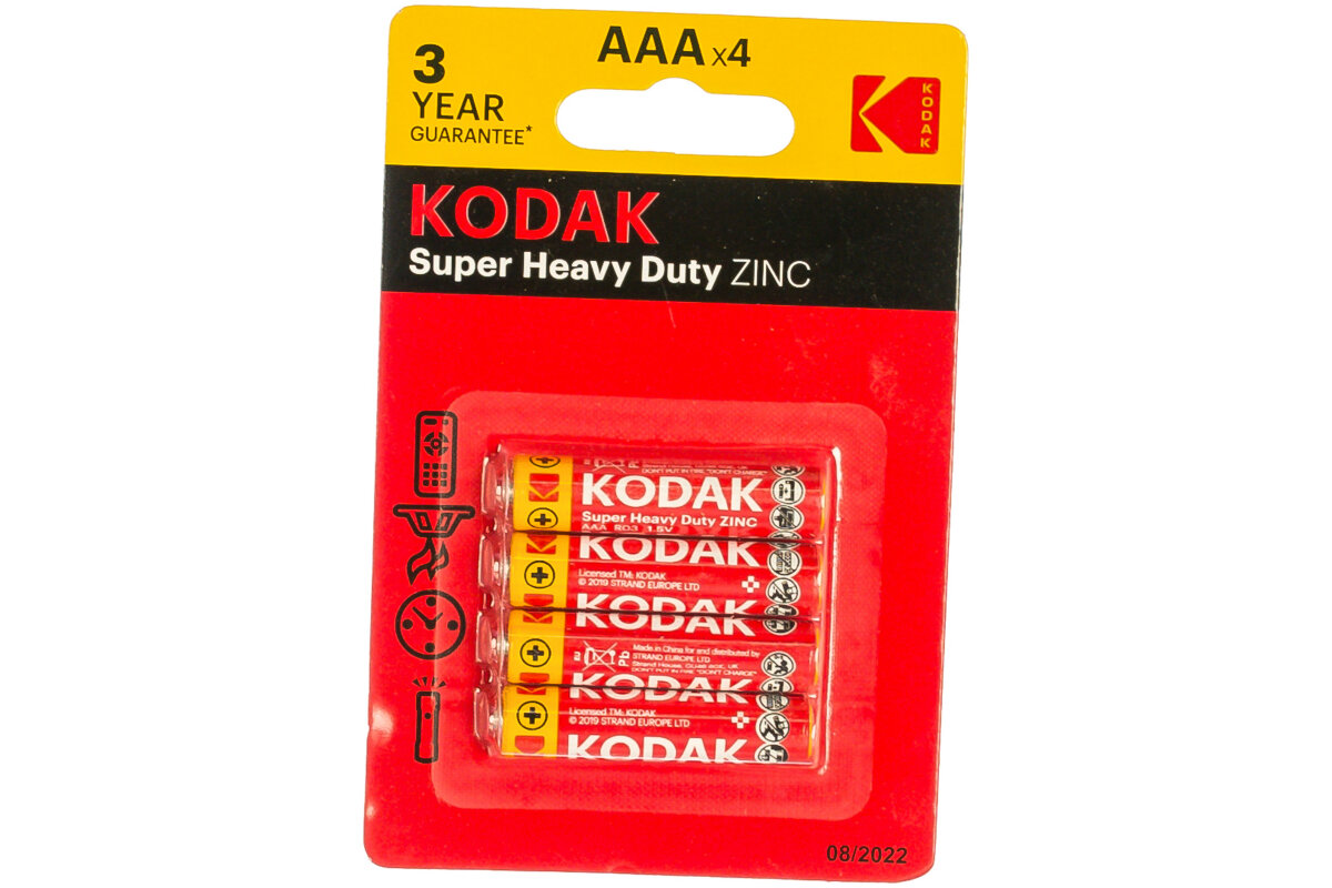 10 цен на Батарейка AAA Kodak R03-4BL Heavy Duty, 1.5В, (4/48/240)