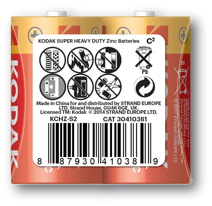 Батарейки Kodak R14-2S SUPER HEAVY DUTY Zinc [KCHZ 2S] (24/144/10368) информация: