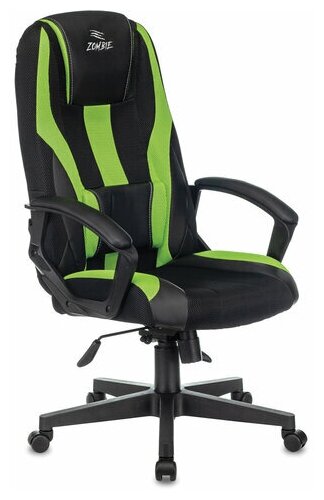Кресло компьютерное ZOMBIE-9/BL+SD, подушка, экокожа/ткань, черное/зеленое