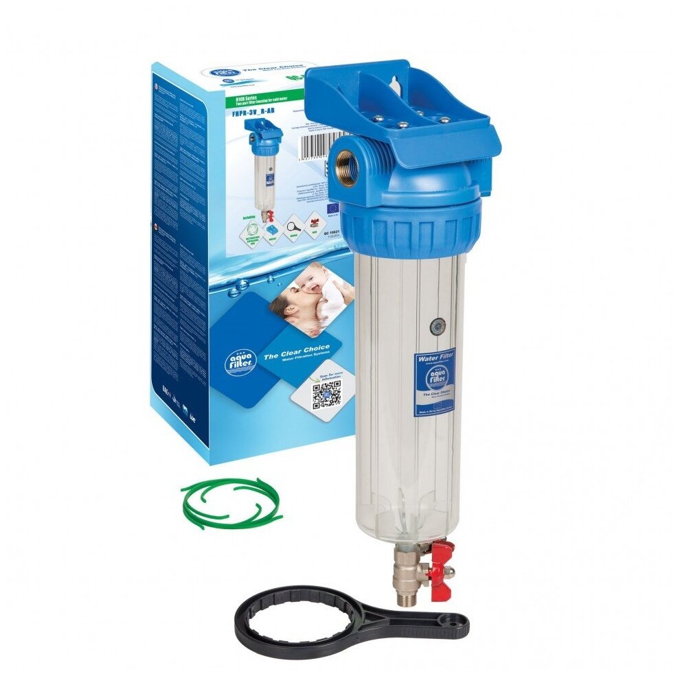 Aquafilter FHPR-B1-AQ (FHPR-HP-WB) Корпус 10" прозрачный на холодную воду с ключом и рамкой (FHPR34-B1-AQ - 3/4")