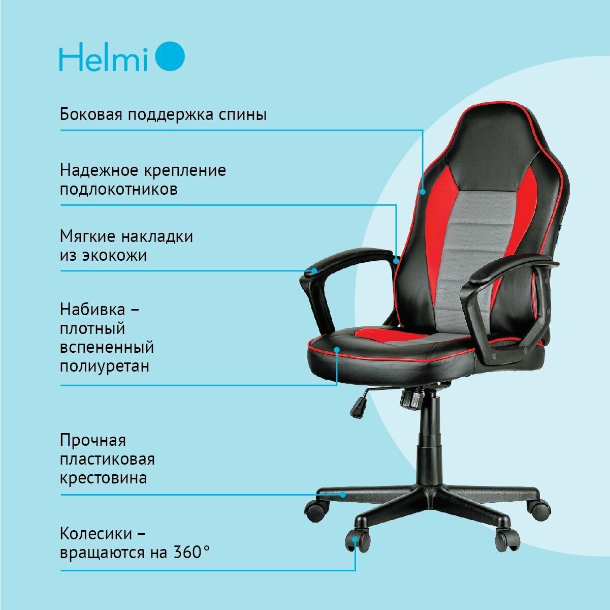 Отзывы на Кресло игровое Helmi "Rally", экокожа черная, серая, красная (297637)