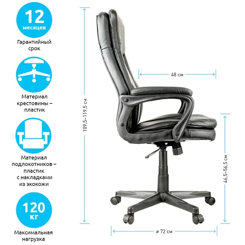 Кресло руководителя Helmi "Advantage", экокожа черная (283026) информация: